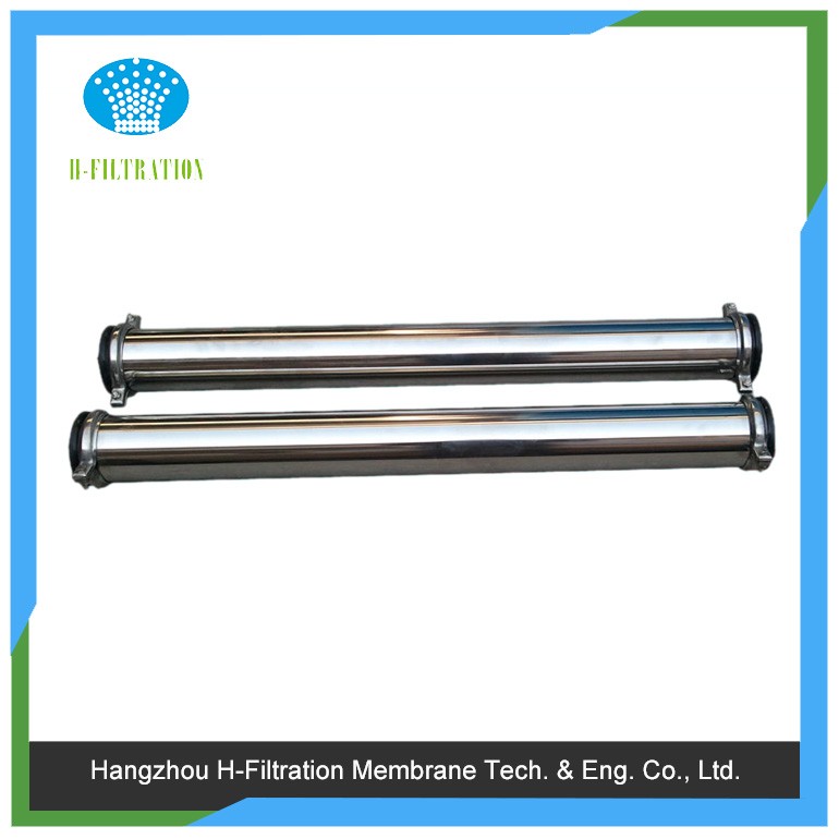 本產(chǎn)品為外壓式超濾膜,根據(jù)膜組件外壁的箭頭方向, 箭頭指向的端口是超濾透過(guò)液出液口,下部是電泳漆原液進(jìn)液口,側(cè)面上面的口為電泳漆回流口,側(cè)面下面的口可以堵住不用;在電泳漆使用過(guò)程中可以使用水沖洗,超濾透過(guò)液沖洗,沖洗時(shí)從膜的回流口進(jìn)入,原液進(jìn)入口排出即可。當(dāng)沖洗效果不是很好時(shí),可以用有機(jī)酸和溶劑浸泡,循環(huán)沖洗清除膜中的油漆,從面恢復(fù)膜的通量。